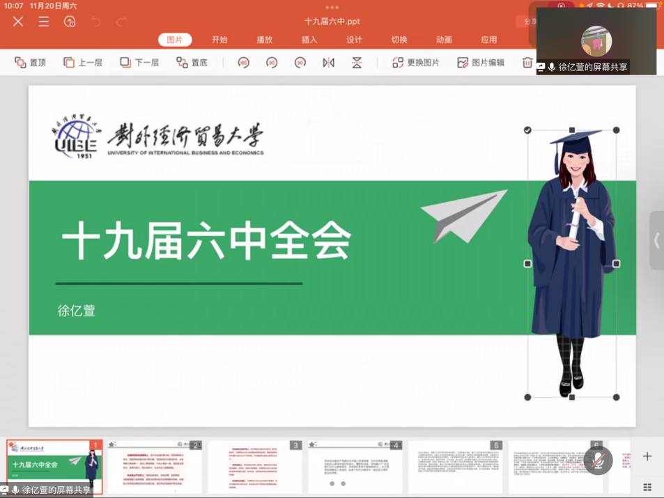 首先是丁崇文老师分享了三点体会:一是这次会议梳理了百年历史,让我们清楚看到中国共产党的伟大贡献,强化了我们的道路自信、制度自信和文化自信;二是时条坚持为我们明确了方向,是党的活力所在,是我们的行动指南;三是时代是出卷人,我们是答卷人,人民是阅卷人,中国青年要汲取力量,赓续红色血脉,使红色基因延续。