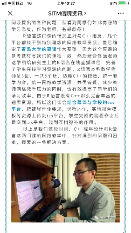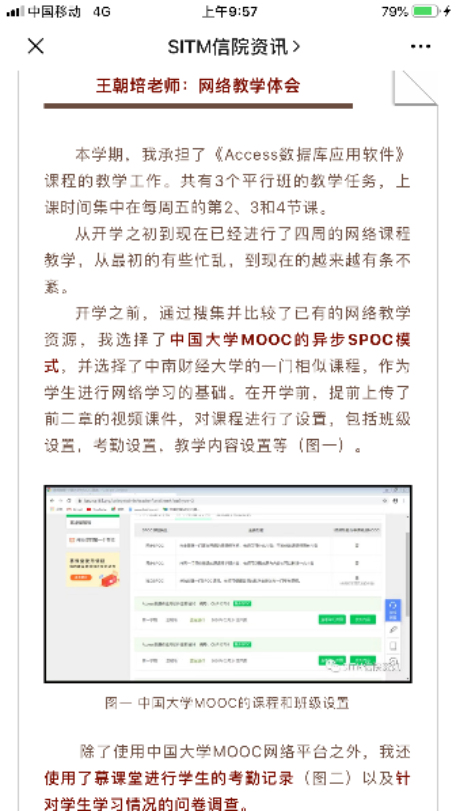 为了维护我校教学秩序正常进行,做到“停课不停教,停课不停学”,体育博彩平台推荐 在接到学校通知后,第一时间成立在线教学组织与管理工作小组,通过微信群向全院30名任课教师传达相关精神,组织任课教师做好网络授课方案,按照教务处要求进行三次网络教学方案摸底工作。鼓励教师采用以校内外MOOC资源网上授课、录播为主,直播为辅的授课方式,并结合学生自学、网络研讨等个性化、多样化的教学方案开展网络教学工作。经过多次动员,我院使用校内外MOOC资源网上授课课程达到78.8%,录播与直播相结合授课课程21.2%,无仅直播方式授课课程。在开课前,建立各课堂微信交流学习群,为教师与学生搭建沟通、讨论平台。任课教师对微信群内学生进行一一核对,对于未进入课程微信群的学生上报体育博彩平台推荐 ,我院联系其他兄弟体育博彩平台推荐 联动督促学生进入课程微信群,切实做到“一个也不能少”。为了网络教学工作顺利进行,体育博彩平台推荐 教学办公室建立体育博彩平台推荐 网络教学工作群,工作群中包含本学期30名任课教师。教学办公室及时在网络教学工作群中发布学校通知与工作安排。每日7:00-24:00实时回复教师对于网络教学安排的问题,做到“有问必答”。同时,体育博彩平台推荐 教学办公室还与各年级大班长建立沟通群,实时了解、解决学生在网络学习过程中以及日常教学事务中遇到的问题与困难,切实保证网络教学工作顺利开展。为及时总结网络教学经验,体育博彩平台推荐 在微信公众号“信院资讯”中推出“体育博彩平台推荐 教师网络教学经验分享”专栏,各位化身“主播”的教师积极分享网络教学经验。疫情期间,毕业审核、毕业论文、成绩异议以及其他大部分日常教学工作都转为线上办理,体育博彩平台推荐 教学办公室通过网络等远程方式,完成专业评估材料准备、毕业论文中期检查、学生学分替换等常规教学相关工作,及时快速地反馈教务处和研究生院。目前,体育博彩平台推荐 网络教学工作平稳有序。