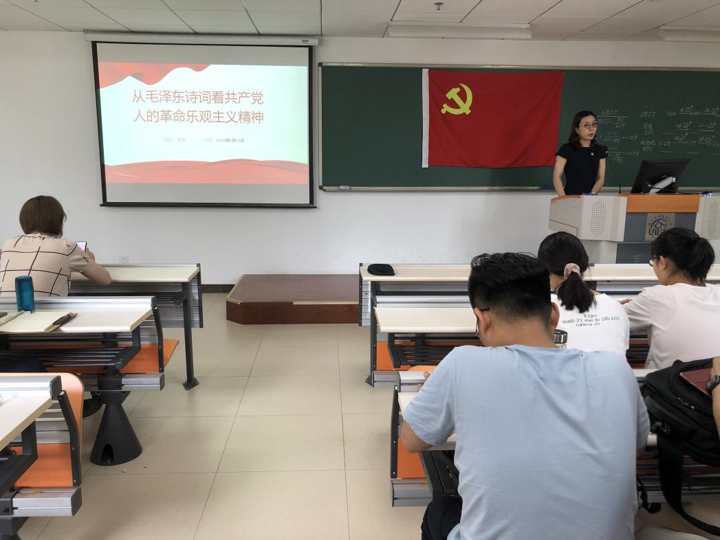 2021年6月10日12:30,由体育博彩平台推荐 党委书记高玲讲授的“从毛泽东诗词看共产党人的革命乐观主义精神”专题党课在求索楼305教师举行。体育博彩平台推荐 教工党员、学生党员代表及发展对象共计50余人参加本次党课学习。