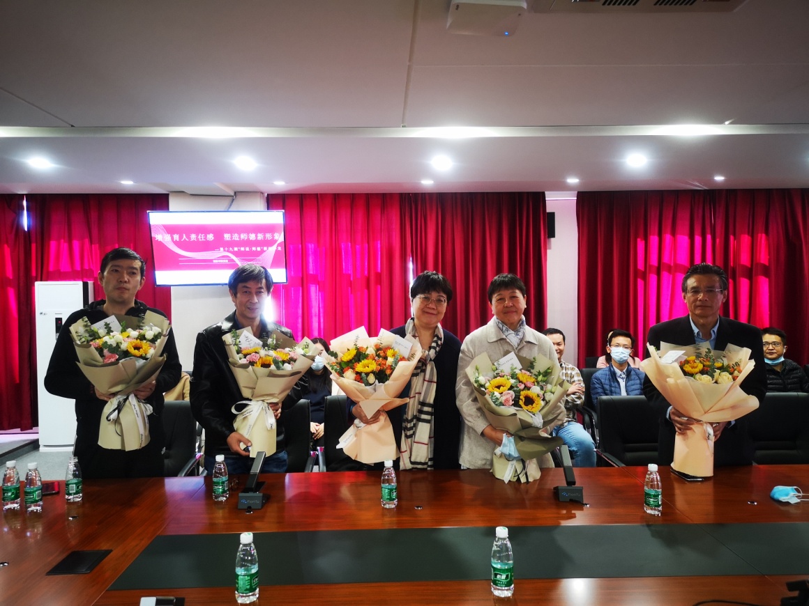 为表达对长期坚持在教育战线,无私奉献老师们的敬意,并传承这种精神,活动第一项内容为体育博彩平台推荐 青年教师为从教满30年的老教师献花。冷柏军老师、陈进老师、刘瑞林老师、李降龙老师、王朝培老师、王晓波老师都从教30多年,一支粉笔、两袖微尘、三尺讲台、四季耕耘,育桃李满天下。陈进老师因参加商务部在贵州的培训工作无法到场,其他五位教师接受了青年老师的献花。