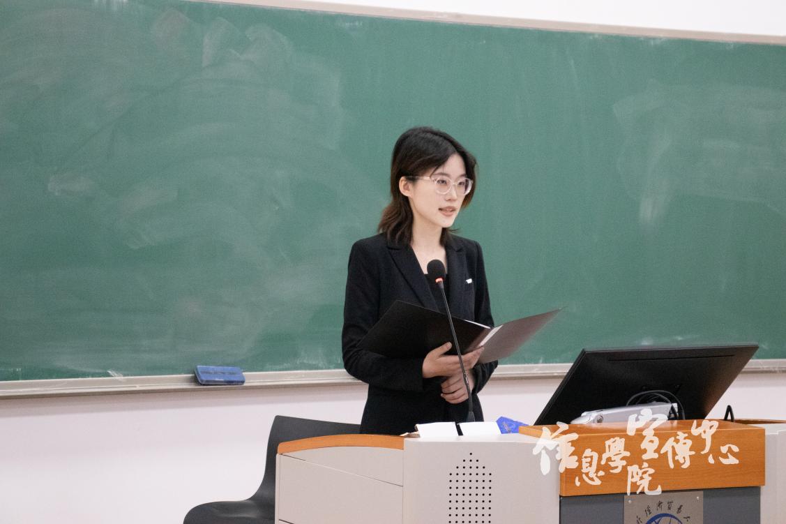 接下来由赵雨涵同学发表致辞。她提出,希望学生组织聚焦主责主业,坚持思想引领;希望同学们树立崇高理想,恪守学生本分,努力学习知识,提高内在素质,以实际行动回应党和国家的殷切期望,同时她也祝愿体育博彩平台推荐 的明天更加美好。