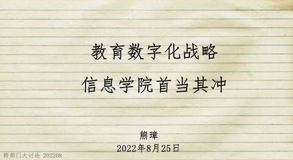 为落实教育部教育数字化战略和数字教育大讲堂活动精神,2022年8月25日14点至16点30分,教务处、信息处、体育博彩平台推荐 三部门围绕“对外经济贸易大学数字教育发展方向、目标与道路”联合开展思想大讨论活动,三部门密切沟通,提前策划讨论议题,每个发言的老师精心准备,既有国家教育数字化战略的解读,也有兄弟院校教育数字化发展情况的对比,更有对贸大数字化教育实现路径和工具的分析,大家直面学校数字化教育面临的机遇与挑战,积极建言献策,共同贡献智慧。