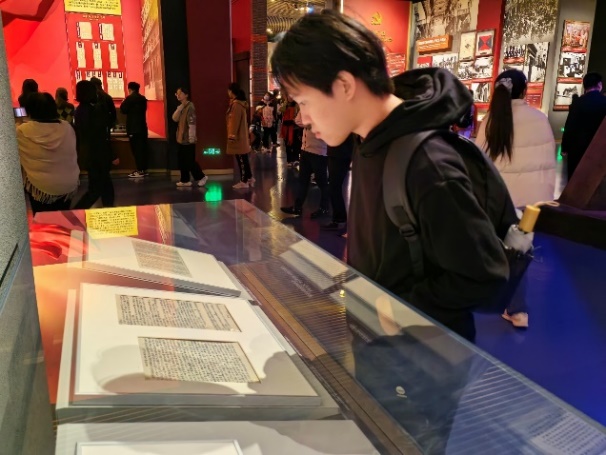 参观过程中,同学们被展览馆内的场景深深震撼。一幅幅珍贵的历史照片、一件件饱经沧桑的文物、一个个逼真的场景复原,生动展现了中国共产党波澜壮阔的百年征程。这些珍贵的文物、翔实的史料、生动的影像和逼真的景观,共同绘就了一幅中国共产党不懈奋斗、坚持理论探索、坚定为民造福的壮丽史诗。大家在参观过程中不时驻足观看,交流感悟,深刻体会到红色政权来之不易、新中国来之不易、中国特色社会主义来之不易。