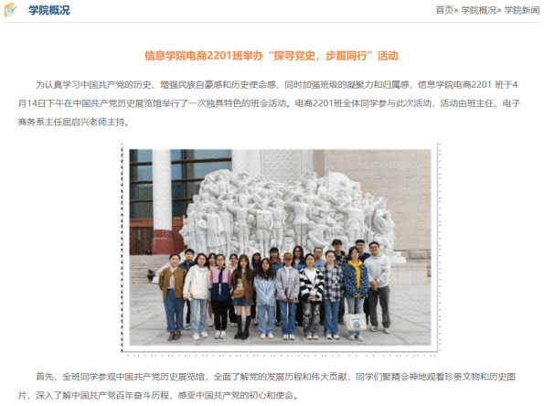 电商2201深刻贯彻体育博彩平台推荐 “党建带团建”的方针,以党建为引领推进团支部建设,取得了显著成效。班级已有4名同学成为预备党员,占团员比例的23.5%。他们在班级内积极传播党建知识,举办了“党建知识信息检索大赛”“党史馆创意知识打卡”等特色团建活动,将理论学习与趣味形式结合,增强了同学们对党史和党的思想体系的理解。此外,班级定期开展红色教育活动,例如参观香山革命纪念馆、香山公园,通过情景式学习传承红色基因。