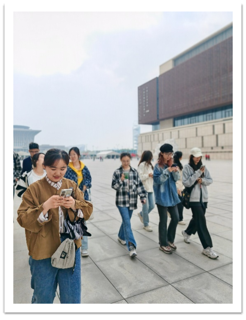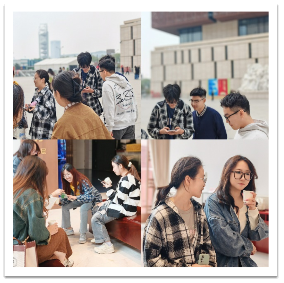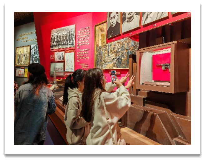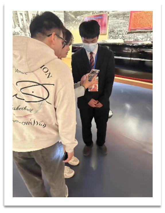 第一组同学在入馆之前已经完成了每个人的分工,一人负责一到两张图片,大家分头寻找,分别前往不同展厅;而第二组同学则是按照展览馆的参观顺序集体寻找10处打卡点。同学们不仅了解到中国共产党的历史发展进程,也能在彼此的相处中感受到很多乐趣。