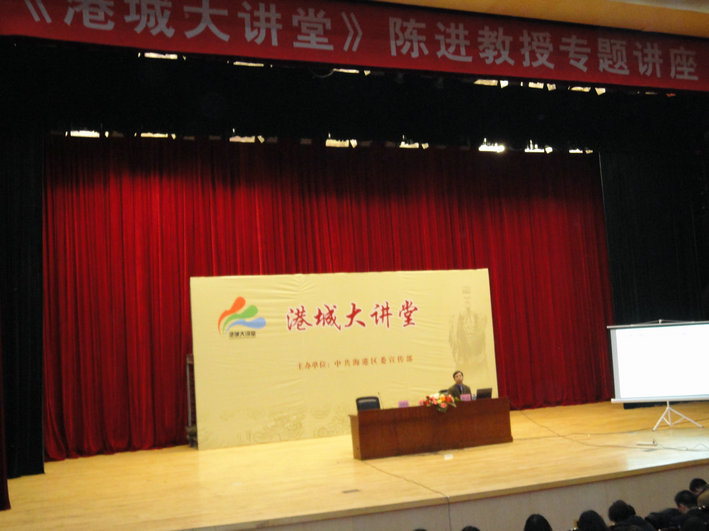 院长、现代服务业研究中心主任陈进教授应秦皇岛港城区区委宣传部邀请,赴港城区“港城大讲堂”讲述《发展现代服务业》专题讲座。秦皇岛港城区领导以及来自全区的1000多名干部、教师及在校大学生聆听了讲座。