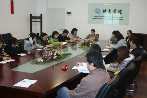 长黄健青、信息管理系主任王朝培、电商系主任殷国鹏、应用数学系主任佟宏志、教学办公室吴梅梅老师、2008级至2011级信息管理系、电子商务系学生代表等参加了会议。
