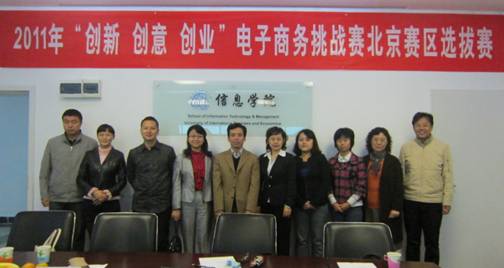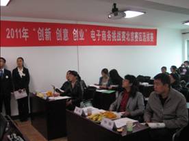 2011年10月22日上午9:00在对外经济贸易大学博学楼1407和1507室,一个个身着正装的大学生接踵而至,他们分别来自对外经济贸易大学、北京交通大学、北京林业大学、北京邮电大学、北京联合大学和中央财经大学,共32个团队。等待他们激烈角逐的是即将开始的“2011‘创新、创意、创业’电子商务挑战赛北京赛区现场答辩选拔赛”。现场答辩选拔赛程序分为作品陈述和问答两个环节,评委依据创新性、创意性、创业性、开发实施情况、书面报告和陈述与答辩六个评分标准每个团队打分。