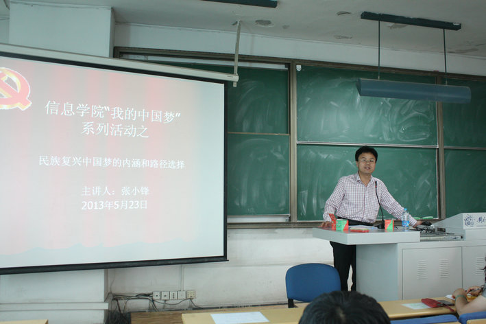 2013年5月23日星期四,体育博彩平台推荐 “中国梦”系列活动之“民族复兴中国梦的内涵和路径选择”讲座在博学506举行。本次活动的主讲嘉宾为对外经济贸易大学党委宣传部部长张小锋,体育博彩平台推荐 分党委书记巩喜云、分党委副书记张志娟以及各位辅导员与任课教师出席活动。