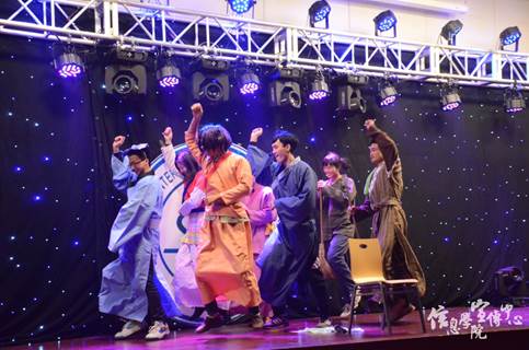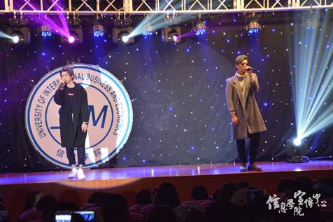 随后,15级学生表演的一出“叶承良苦追花美景,三连斩只为美人心”的情景剧精彩连连,引人捧腹开怀;由新晋歌手陈秋实和蔡照带来的歌曲《两小无猜》将全场气氛推向高潮,醇厚磁性的嗓音,动人深情的歌声,将人们心底最纯真的美好唱入心坎。最后,压轴表演的新街口组合与方玥的说唱音乐同样high翻全场,观众举起开着灯光的手机一起伴随着他们的RAP及歌声摇摆着,现场的星星点点将他们带来的青春的激情与活力充分展现。其中,新晋歌手方玥与新街口组合同台献唱的歌曲,温暖人心,将晚会推向尾声。