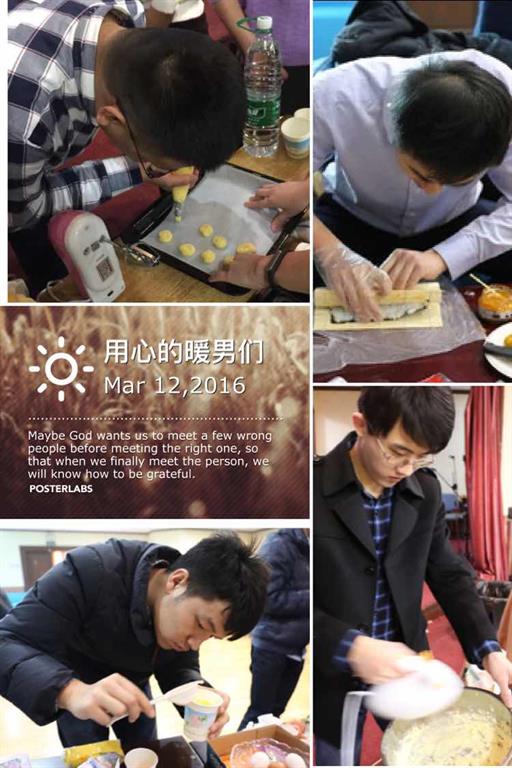 接下来,本次创意女生节的重头戏DIY烘焙制作正式拉开序幕。蛋糕组、寿司组、饼干组的“指导老师”闪亮登场,平日里看似粗枝大叶的IT男们更是跃跃欲试,参与食物制作的热情空前高涨。寿司组被迅速围住,暖男们洗切、揉搓、铺卷的动作一气呵成,精致美味的新鲜寿司卷让女主们叹为观止!蛋糕及饼干组也热闹非凡:打蛋液、加牛奶、搅拌面糊、挤花裱花……暖男们一个个有条不紊,甚至连第一次的生手也颇具大师风范。