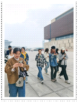 第一组同学在入馆之前已经完成了每个人的分工,一人负责一到两张图片,大家分头寻找,分别前往不同展厅;而第二组同学则是按照展览馆的参观顺序集体寻找10处打卡点。同学们不仅了解到中国共产党的历史发展进程,也能在彼此的相处中感受到很多乐趣。