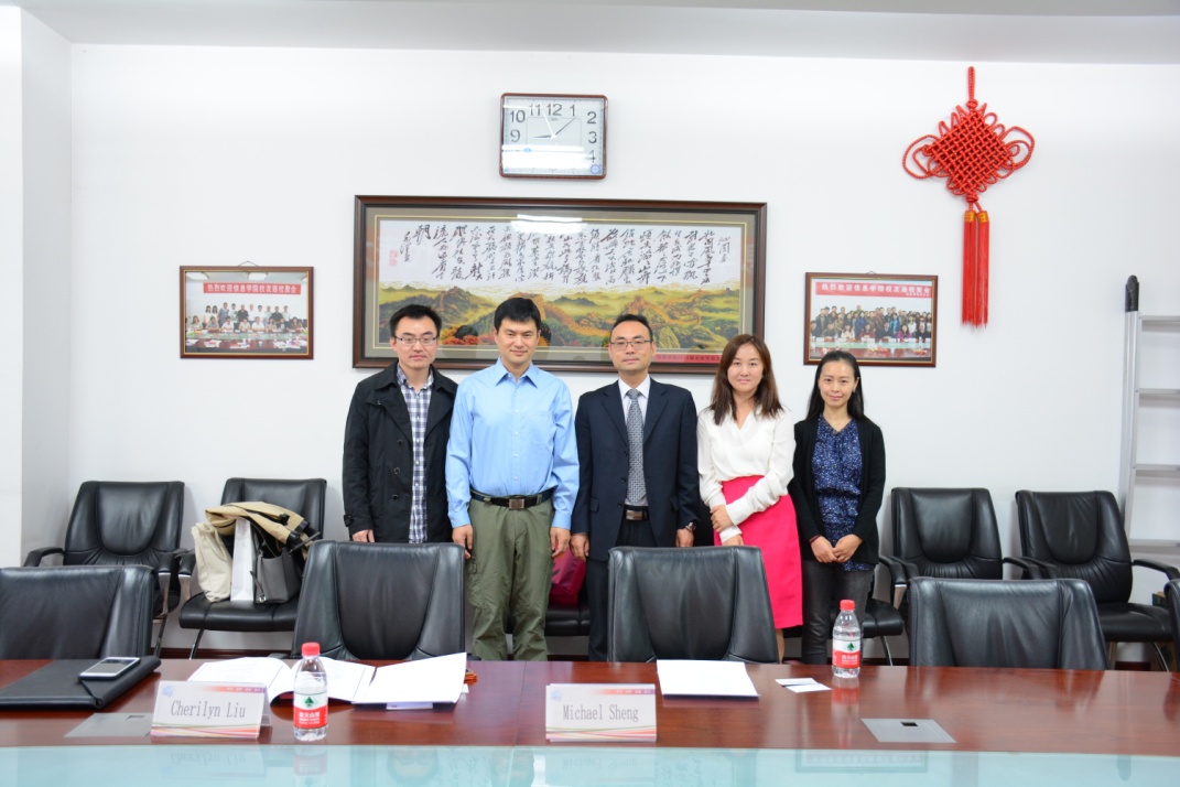 访问交流。交流会于上午9:00在博学楼1416举行,我院分党委书记李兵教授、分管国际化工作的华迎副院长、大数据系主任黄浩副教授、国际化工作助理于芳芳老师参加了本次交流会。
