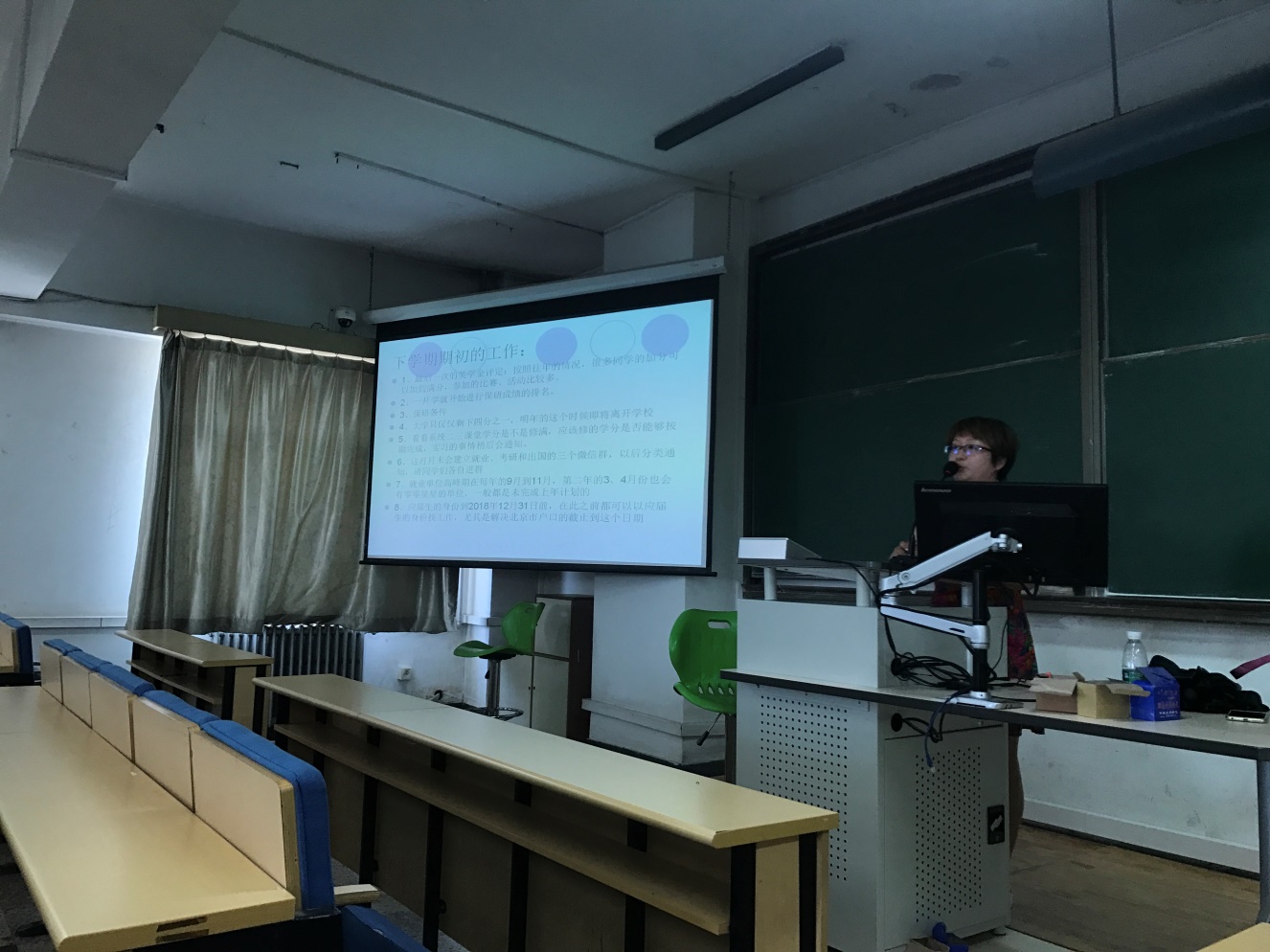 辅导员叶潇舟在博学409召开了2014级本科生年级大会。大会主要介绍2014级目前的毕业去向统计情况、往届毕业生发展情况、考试诚信教育及下学期期初的工作安排。