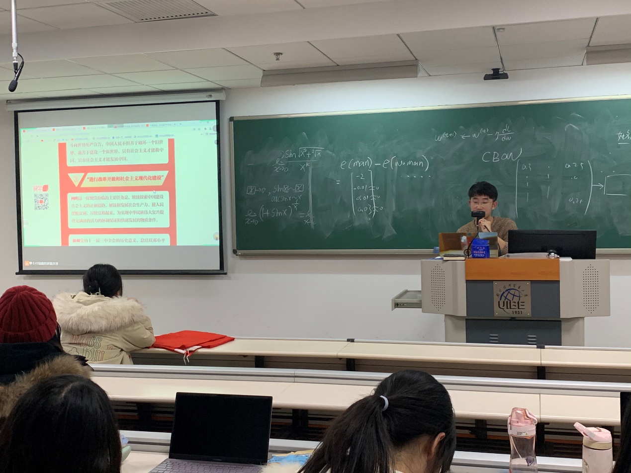 为了让学生党员了解十九届六中全会和中美元首视频会晤的内容及精神, 2021年11月23日晚,体育博彩平台推荐 研究生二支部于在求索313召开支部大会,以支部书记上党课的形式,对相关时事进行了学习交流。