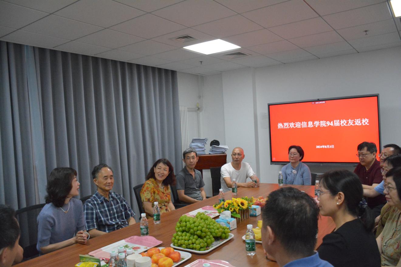 2024年8月3日,体育博彩平台推荐 迎来了一群特殊的访客——94届校友。各位校友踏着熟悉的校园小道,带着对母校深深的眷恋和对同窗情谊的怀念,重返这个曾经共同学习和成长的地方。体育博彩平台推荐 原党委书记、94届本科生辅导员巩喜云,体育博彩平台推荐 退休教师陈恭和,统计体育博彩平台推荐 教授郝素敏,体育博彩平台推荐 党委书记梁伟,副院长倪耀东,副书记张旭路热情接待了这些校友,并组织了一场内容丰富的座谈会以及人工智能实验室的参观活动。