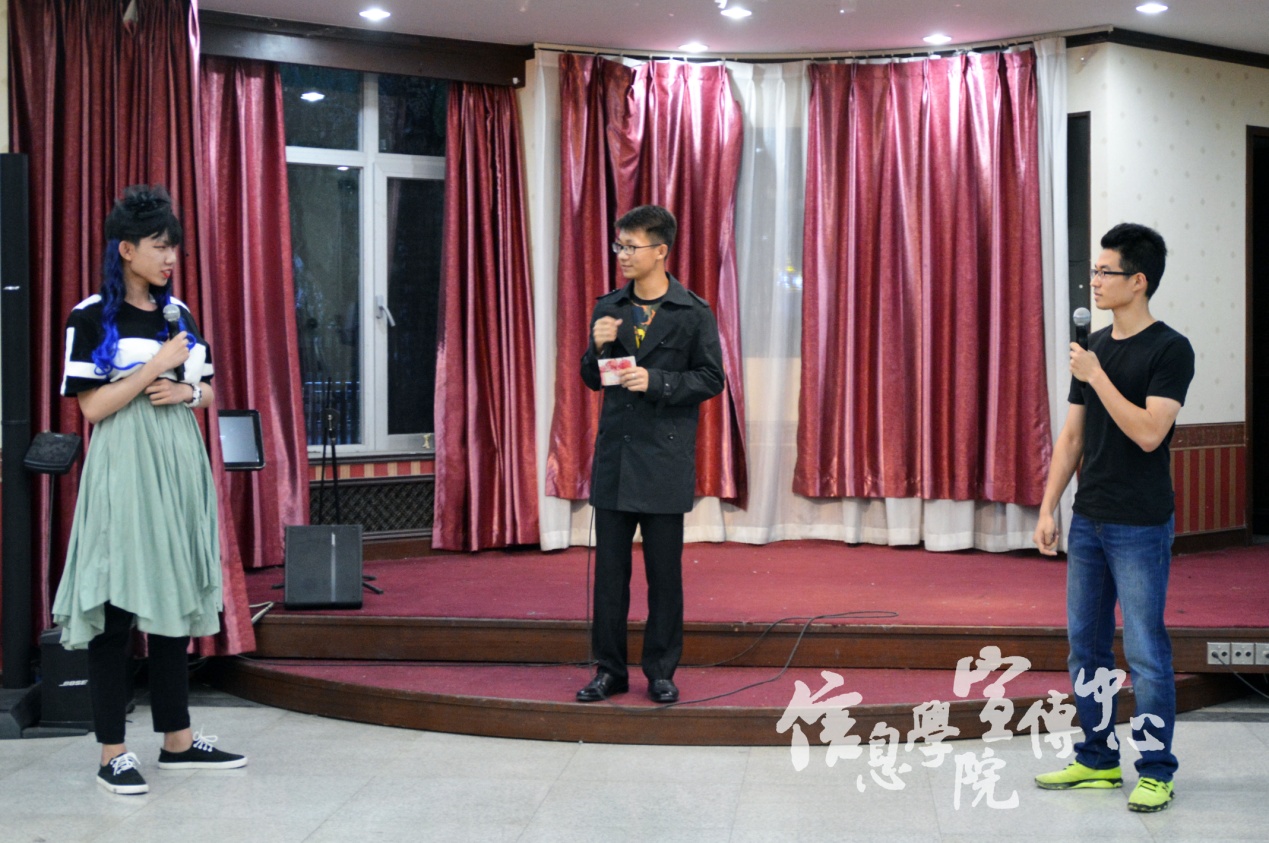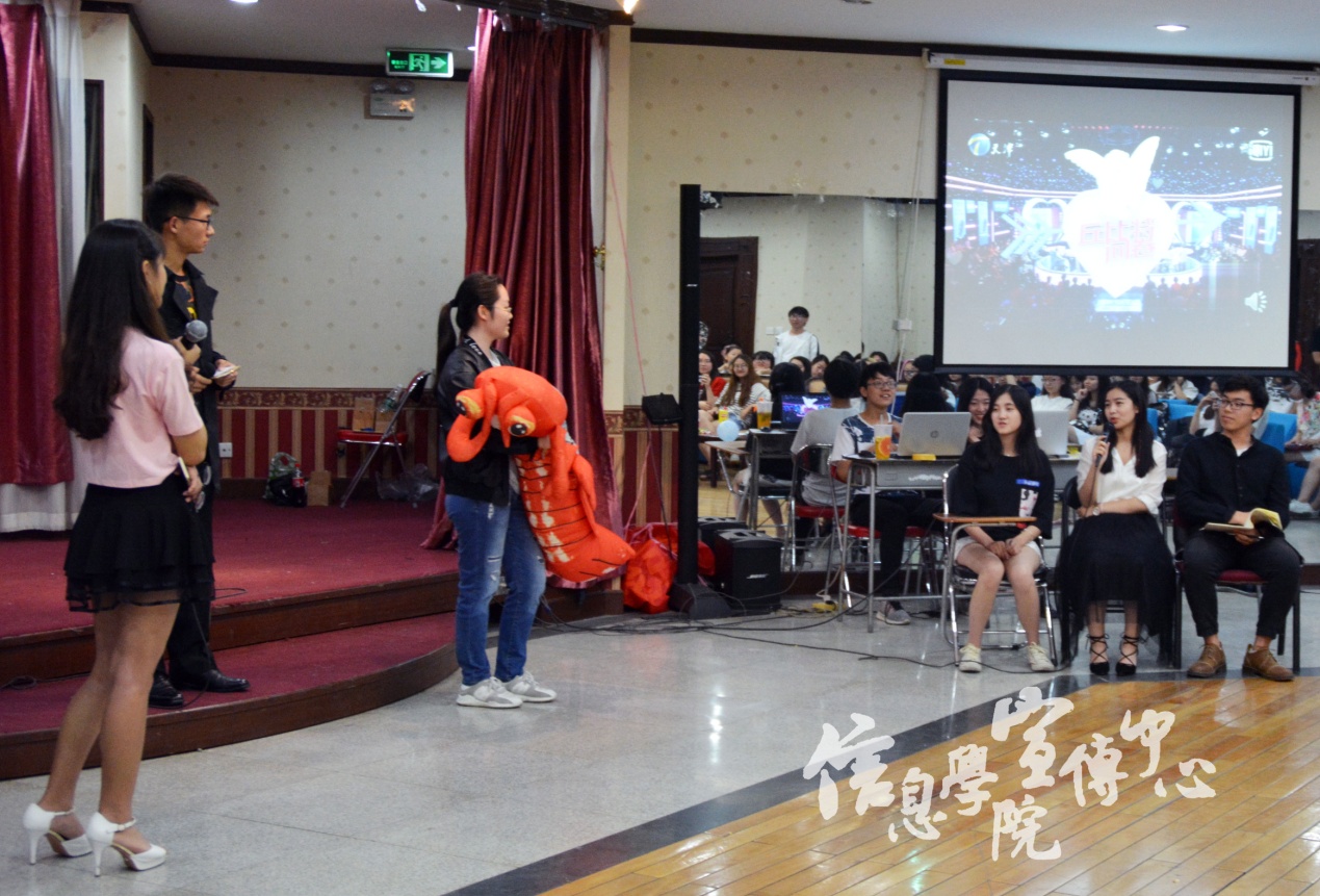 每个部门的节目表演完后,部长们温馨的视频让大家既感动又惊喜,不仅体现了部长们的用心,也体现了他们对小干事们的爱。此外,穿插在晚会节目中的“气球吹纸杯”、“瞎子背瘸子”和“杯子传水”游戏嗨翻全场,各部门积极参与,为大家带来不少欢乐。
