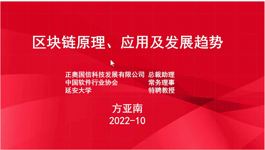 2022年11月6日,体育博彩平台推荐 举办第二场数字经济大讲堂活动。讲座由延安大学特聘教授,正奥国信科技发展(天津)有限公司副总裁方亚南博士主讲,题为《区块链原理、应用及发展趋势》。讲座由电子商务系系主任屈启兴副教授主持,体育博彩平台推荐 师生在线参与了此次活动。