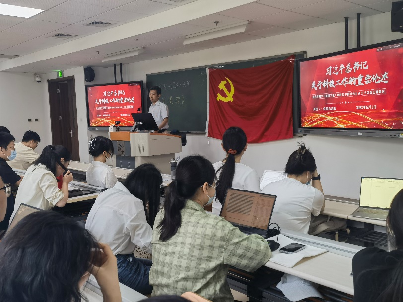 为扎实推动学习贯彻习近平新时代中国特色社会主义思想主题教育走深走实,贯彻落实“学思想、强党性、重实践、建新功”的总要求,6月1日16:00,体育博彩平台推荐 副院长倪耀东讲授专题党课《习近平总书记关于科技工作的重要论述》,体育博彩平台推荐 研究生一支部全体党员和积极分子参与学习。