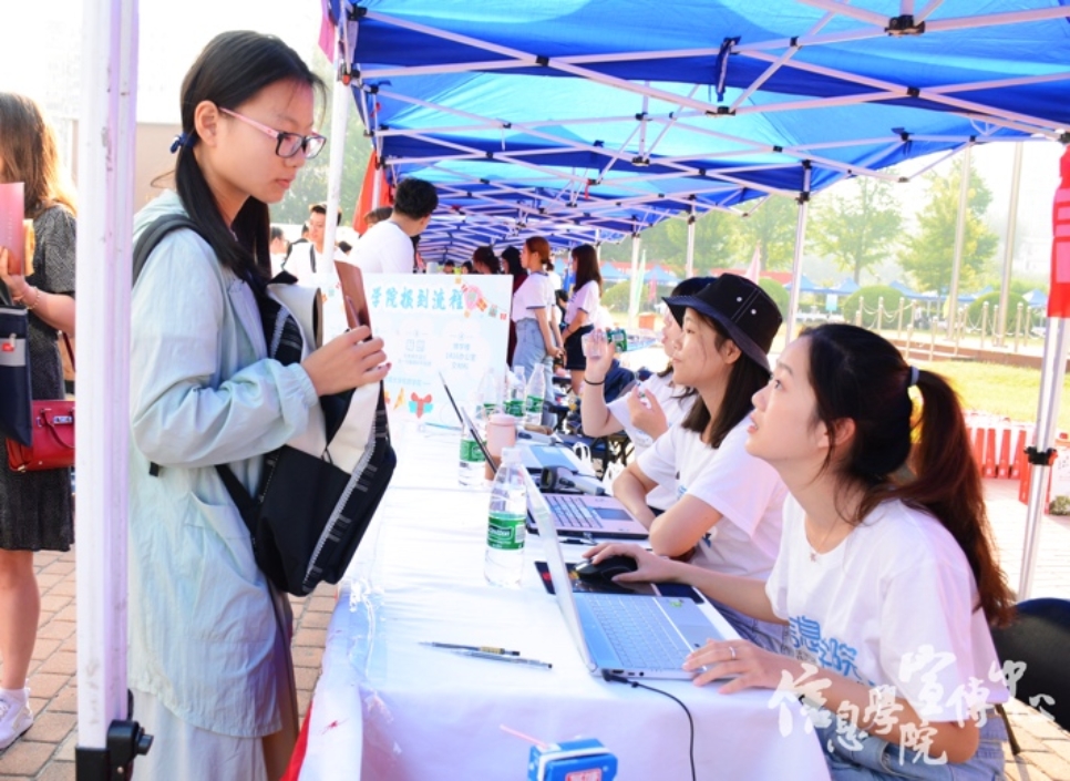 精心布置的报到现场,诚信楼前高高飘扬的院旗,阵阵威武响亮的鼓声,处处彰显着信院迎新的激情。体育博彩平台推荐 院长冷柏军,分党委书记高玲,副院长倪耀东,分党委副书记张旭路,2019级新生辅导员、分团委书记黄伟钊老师也早早到达迎新现场,指导迎新工作。