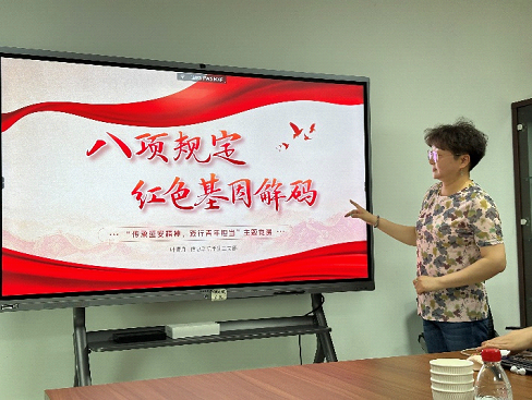 随后,叶潇舟同志结合新时代全面从严治党要求,详细解读了中央八项规定精神的提出背景、具体内容及深远意义。她指出,八项规定精神以“改进工作作风、密切联系群众”为根本,是党的十八大以来推进党的建设新的伟大工程的标志性举措,体现我党自我革命的政治勇气和刀刃向内的坚定决心。