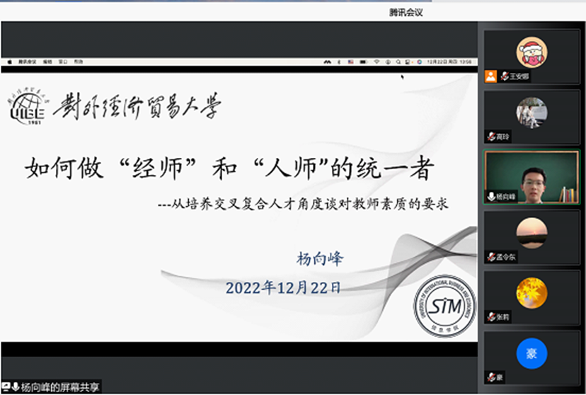 体育博彩平台推荐 杨向峰副教授从学科交叉融合的大趋势对老师提出的期望和要求出发,指出教师一方面应有过硬的专业核心能力,这是做好“经师”的基础,另一方面要做到育人先育己,以身作则,以身示范,热爱所从事的教育岗位,主动关心关爱学生,做好“人师”的表率。