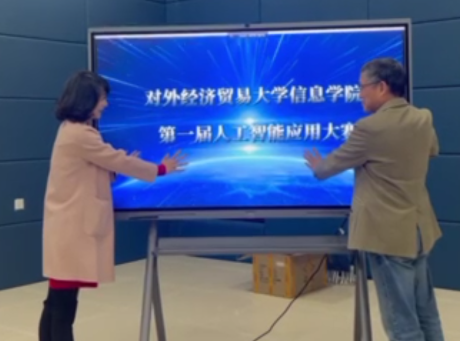 2024年1月12日,体育博彩平台推荐 在求索楼红天人工智能实验室举行对外经济贸易大学体育博彩平台推荐 第一届人工智能应用大赛发布会。参会的有体育博彩平台推荐 领导班子成员及部分在校教师。