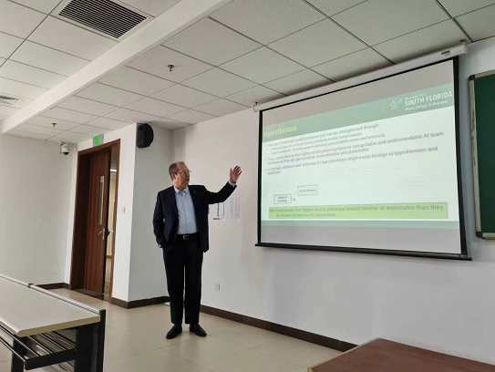 会后Gert-Jan de Vreede教授应邀做了题为“社会临场感对人机智能协作过程的影响”的报告,本次讲座由体育博彩平台推荐 于晓丹副教授主持,体育博彩平台推荐 马双教授,张莉教授,顾睿副教授等60余名师生参加了讲座交流。