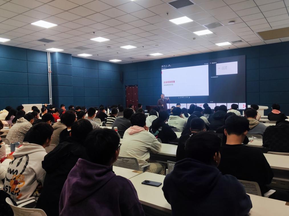 随后,在《人工智能创新项目——项目立项》课程中,赵老师从企业中实际项目入手,给同学们介绍了大级别企业项目的实际开发流程,并从立项背景调研、财务预算、产品运营、团队设计、风险分析等环节展开介绍了在项目立项过程中需要重点关注的问题。