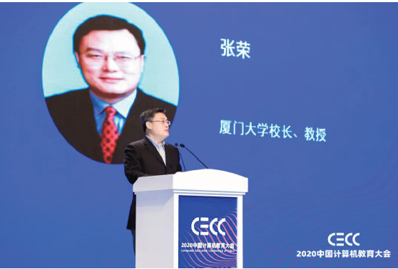 厦门大学校长张荣在讲话中谈到,新时代计算机科学对于发展其他高新技术具有不可或缺的重要作用,在国家发展中具有重要的战略意义。在长期的发展过程中,计算机科学的发展有赖于高水平的计算机教育,有赖于兼具家国情怀与国际视野的高水平计算机专门人才。