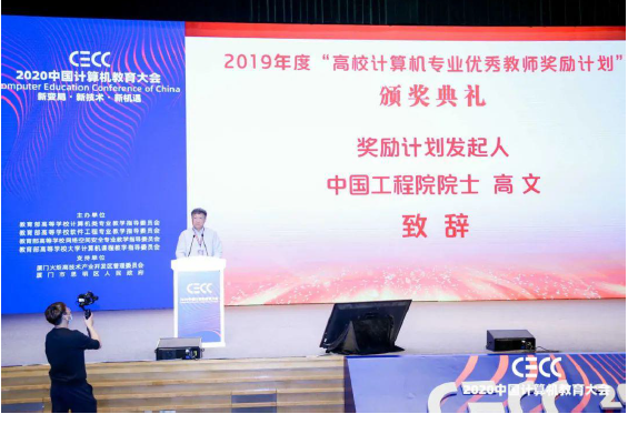 此外,大会现场还揭晓了2019年度“高校计算机专业优秀教师奖励计划”获奖教师,高文院士作为发起人发言并颁奖。