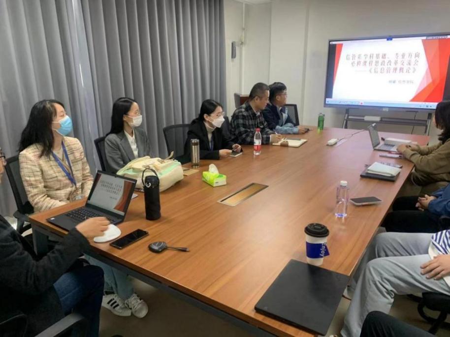 2022年10月13日,信息管理党支部教师进行课程思政交流会。在会上,首先各位老师集体学习了习近平总书记关于课程思政的重要讲话。“要把课堂教学和实践教学有机结合起来,充分运用丰富的历史文化资源,紧密联系中国共产党和中国人民的奋斗历程,深刻领悟马克思主义中国化的内在道理,深刻领悟为什么历史和人民选择了中国共产党和社会主义,进一步坚定‘四个自信’。”——2020年9月16日至18日,习近平总书记在湖南考察时强调。习近平总书记还指出:“要从党和国家事业发展全局的高度,坚守为党育人、为国育才,把立德树人融入思想道德教育、文化知识教育、社会实践教育各环节。”本次会议还重点分享了个人对习近平总书记关于高校人才培养重要论述精神的理解。本着大思政、大教育的思路,充分发挥好每门课程的育人作用,全面推进学系课程思政建设,促进各类课程与思想政治理论课同向同行,努力培养担当民族复兴大任的时代新人。会议上,顾睿老师做了课程思政建设经验分享,主要展示《信息管理概论》课程的思维导图,介绍了思政点如何与课程内容有效融合。