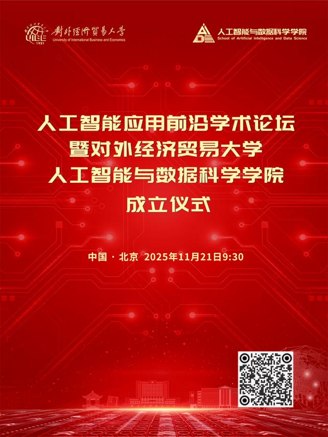 人工智能与数据科学正深度重构经济社会发展格局,锻造经济高质量发展新引擎,决定着我国在全球科技竞争中的战略主动地位。对外经济贸易大学把握历史契机,顺应时代需求,主动融入国家发展大局,在原体育博彩平台推荐 基础上成立体育博彩平台推荐 。谨定于2025年11月21日9:30举办“人工智能应用前沿学术论坛暨体育博彩平台推荐-体育博彩导航 成立仪式”。