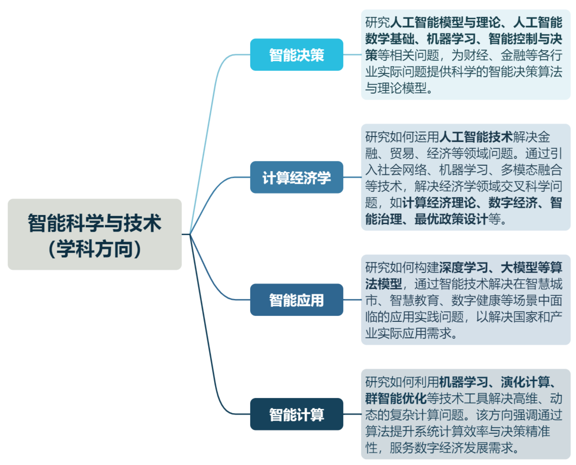 对外经济贸易大学智能科学与技术包含智能决策、计算经济学、智能应用、智能计算四个研究方向。