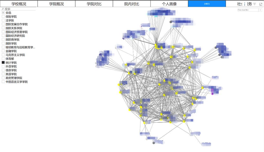 利用知识图谱可视化技术对教师相关性数据指标进行展示,生成教师影响力看板,反映教师的学术水平、贡献度和合作关系等;